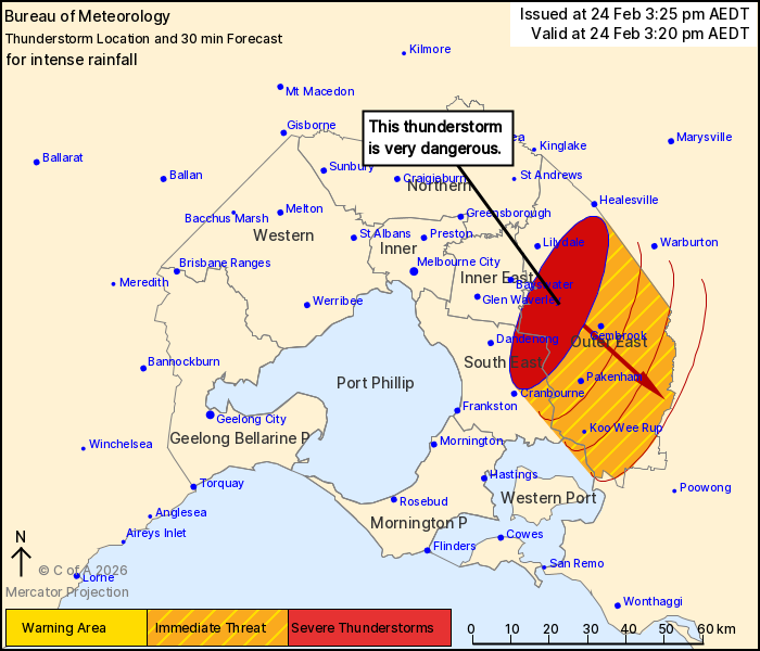 Belgrave and Berwick. This thunderstorm is moving towards the