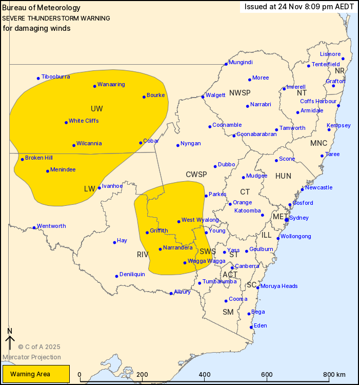 affected include Wagga Wagga, Cobar, Bourke, Broken Hill, Griffith