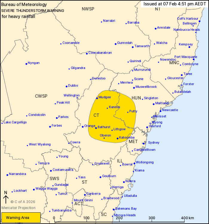 hours. Locations which may be affected include Mudgee, Bathurst,