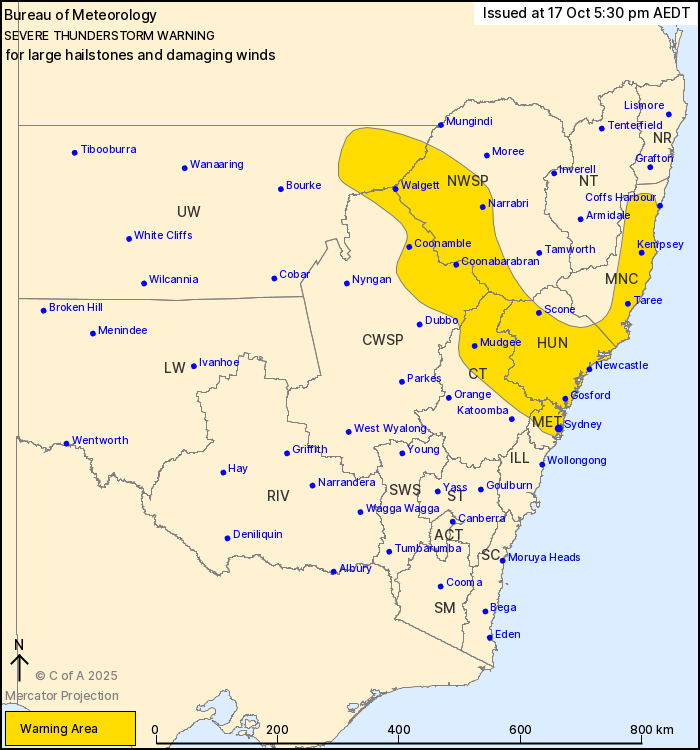 4 cm hailstones were reported at Stuart Town around 4:50 pm