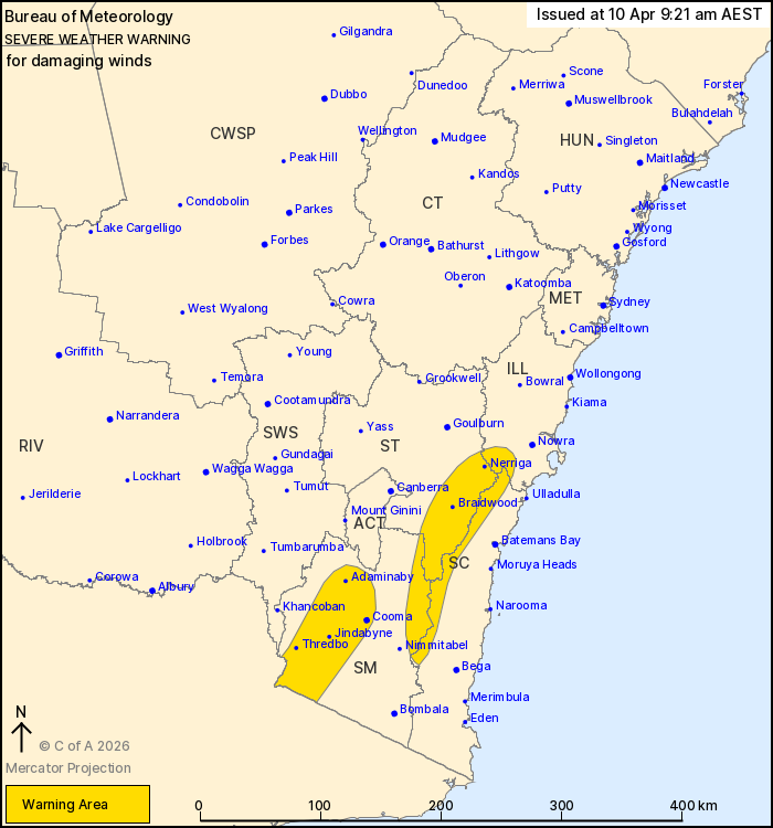 Locations which may be affected include Jindabyne, Batemans Bay,