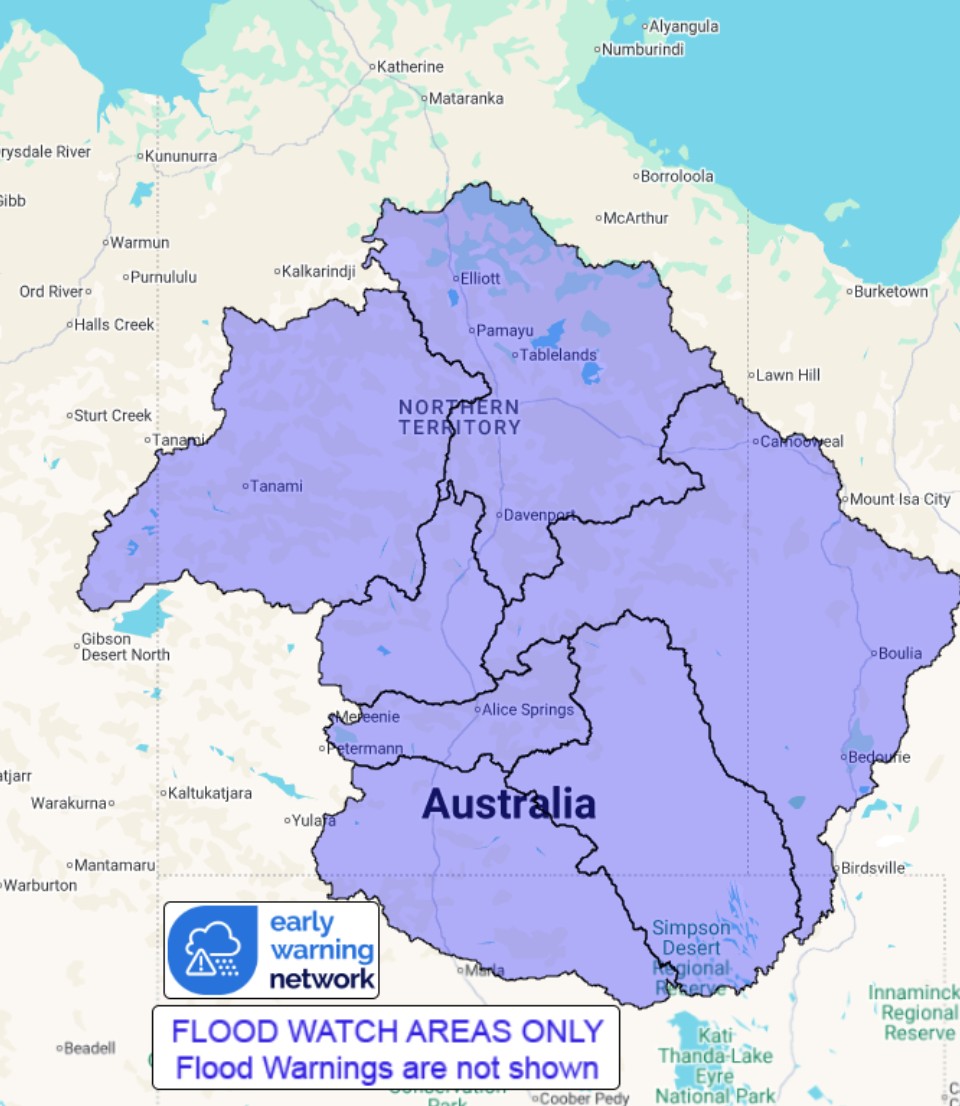 Flood Watch for parts of the Eastern, Central and Western Inland Areas of the Northern Territory