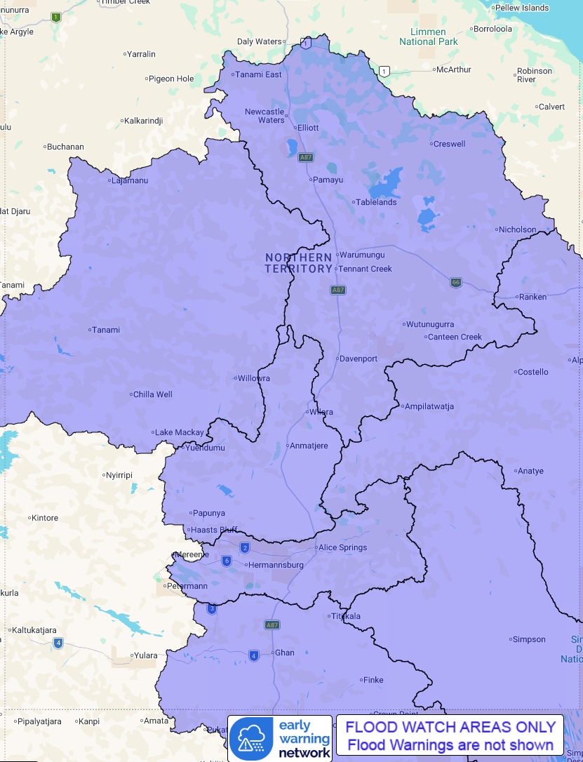 Creek and Simpson Desert. A Severe Weather Warning for heavy to