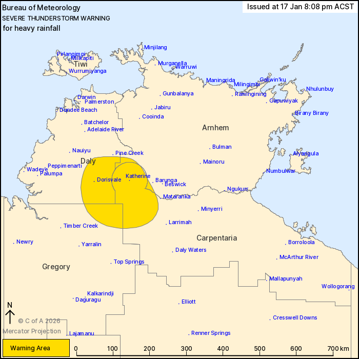 hours. Locations which may be affected include Katherine and