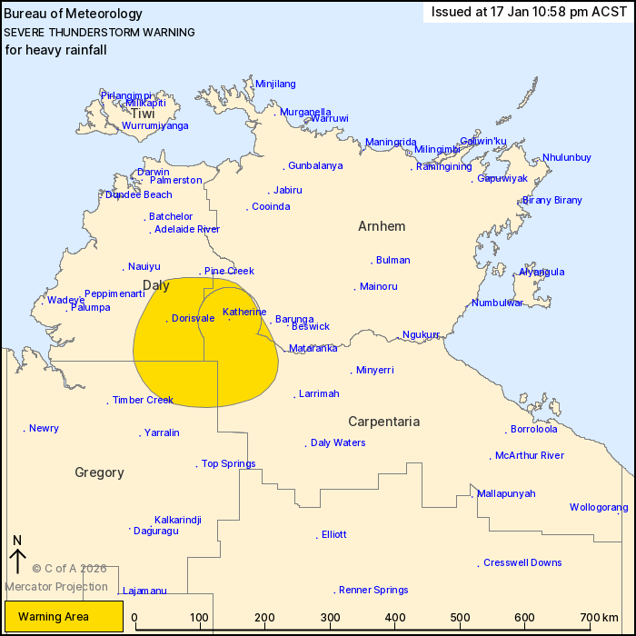 hours. Locations which may be affected include Katherine and
