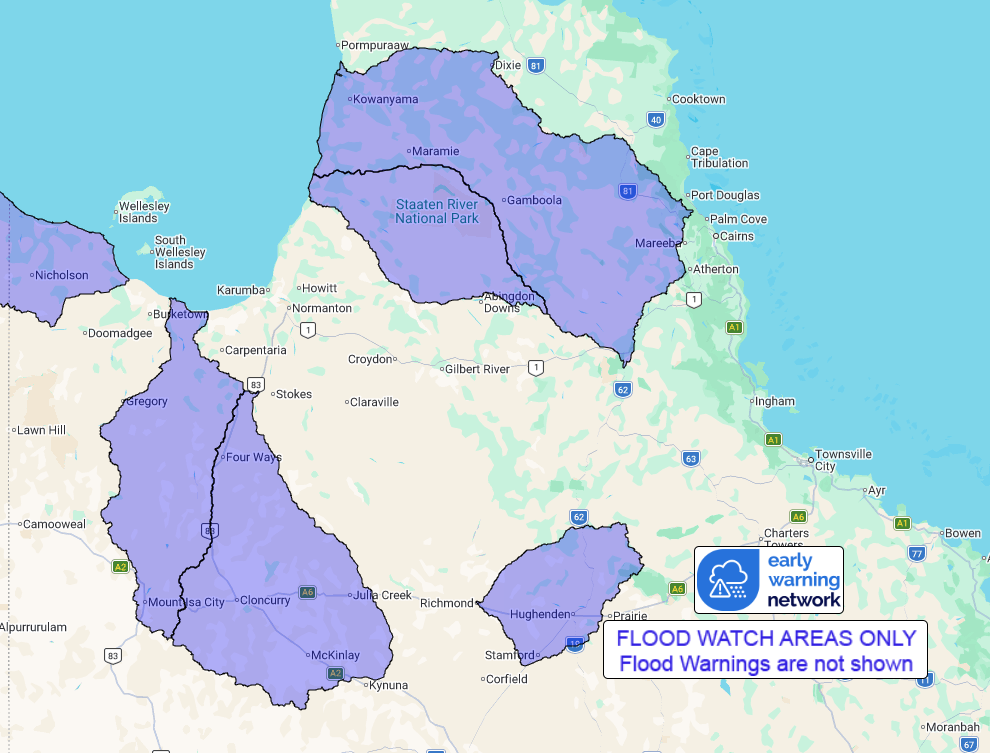 Catchments across the Flood Watch area remain wet to saturated