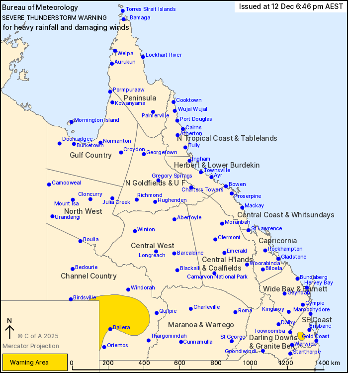 Severe thunderstorms are no longer occurring in the Gulf Country