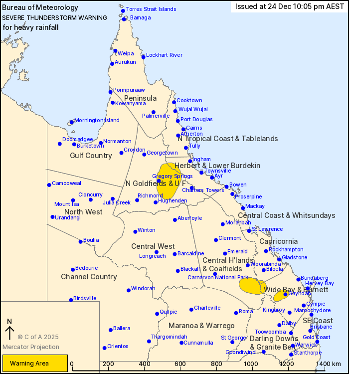 For people in parts of Northern Goldfields and Upper Flinders, Herbert and Lower Burdekin, Central Highlands and Coalfields, Capricornia and Wide Bay and Burnett Forecast Districts.