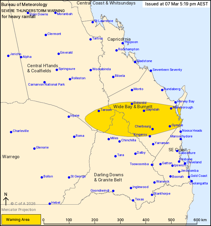hours. Locations which may be affected include Gympie, Maryborough,