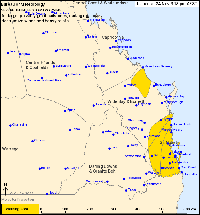be affected include Gold Coast, Brisbane, Maroochydore, Ipswich,