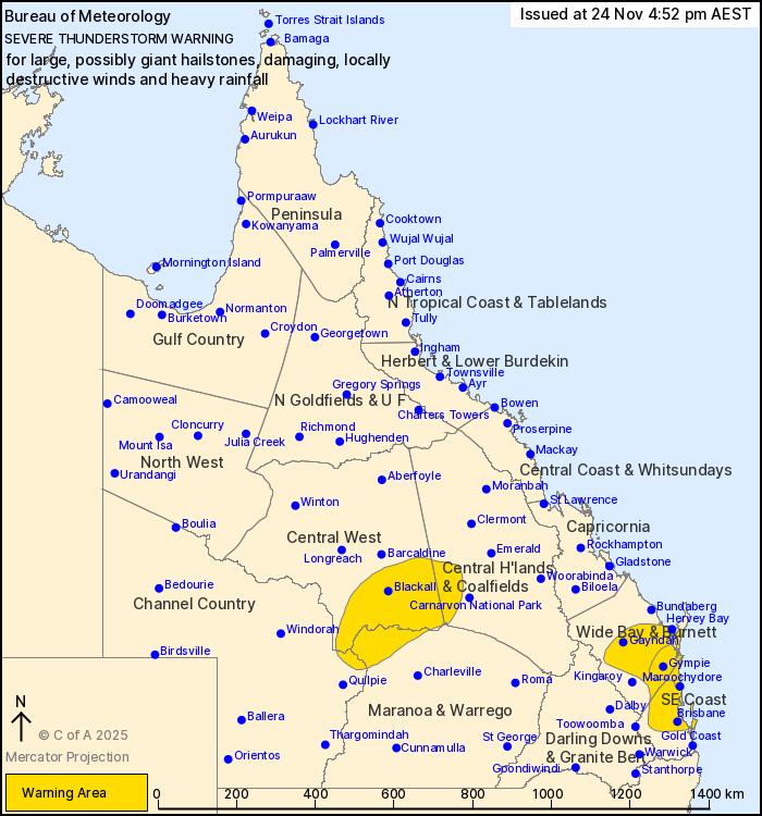 11 CM HAILSTONES OBSERVED AT MANLY, FERNY HILLS AND ALEXANDRA