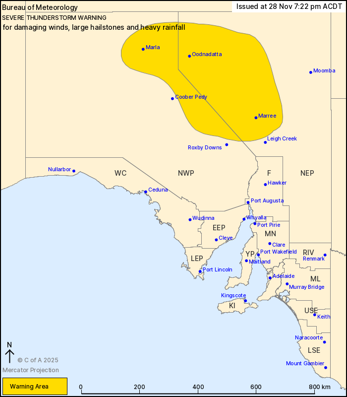 be affected include Marla, Oodnadatta, Marree and Dalhousie