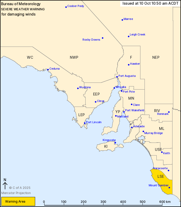 For the REMAINDER OF THE WARNING AREA including MOUNT GAMBIER: