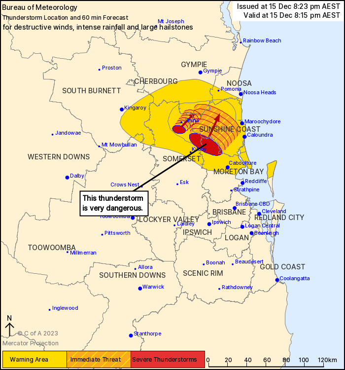 over the next several hours in parts of the Wide Bay and Burnett