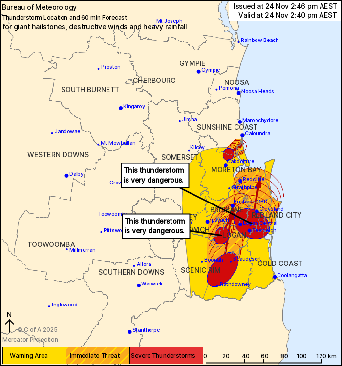 Cleveland and Greenbank. These thunderstorms are moving towards the