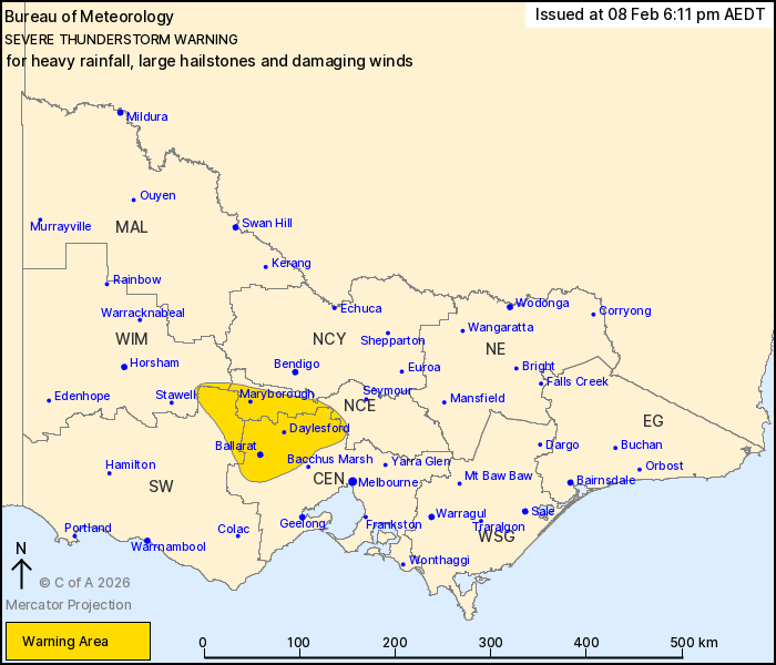 affected include Maryborough, Ballarat, Daylesford, Castlemaine and