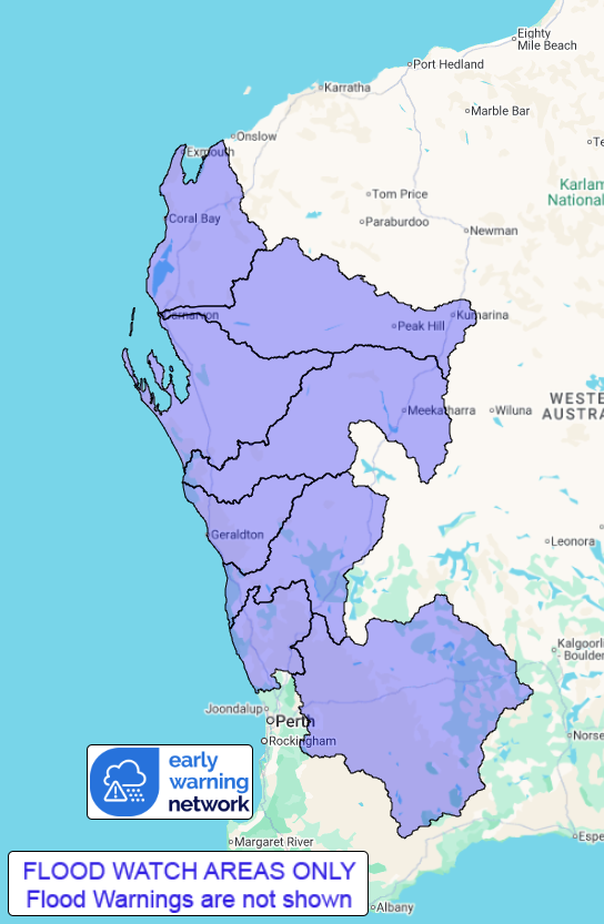 Flood Watch for the Gascoyne Coast Rivers, southern Pilbara Coast