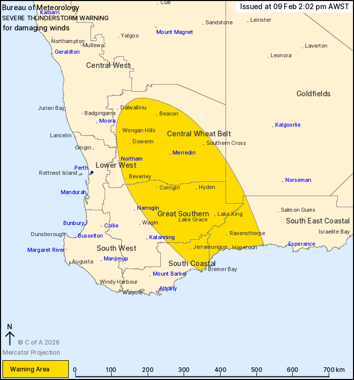 affected include Merredin, Bremer Bay, Corrigin, Dowerin, Hopetoun