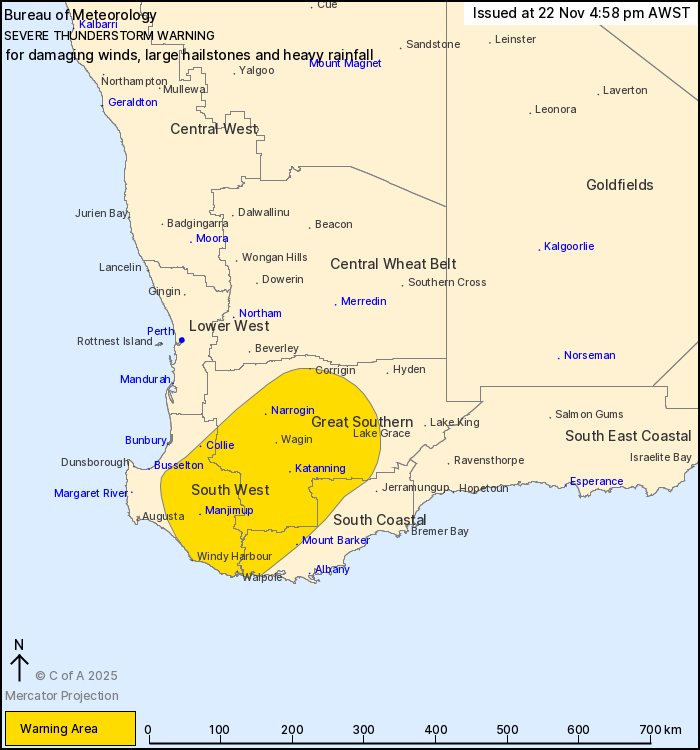 Severe thunderstorms continue in parts of the Great Southern and
