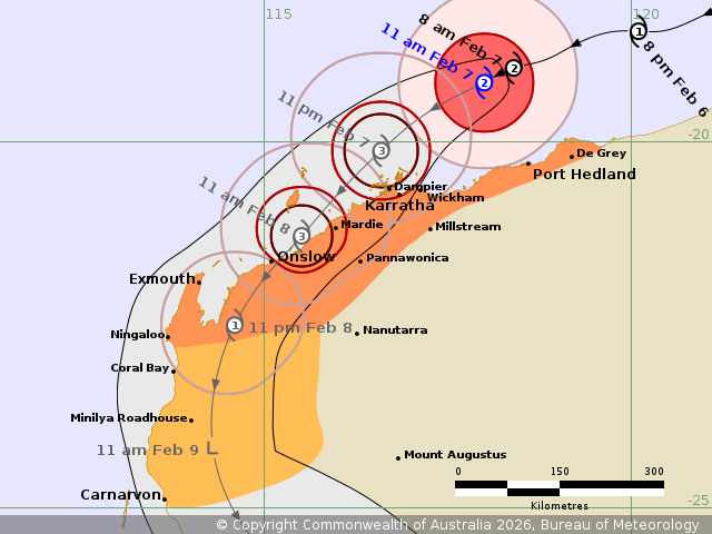 category 3 cyclone as it passes just north of Karratha later today